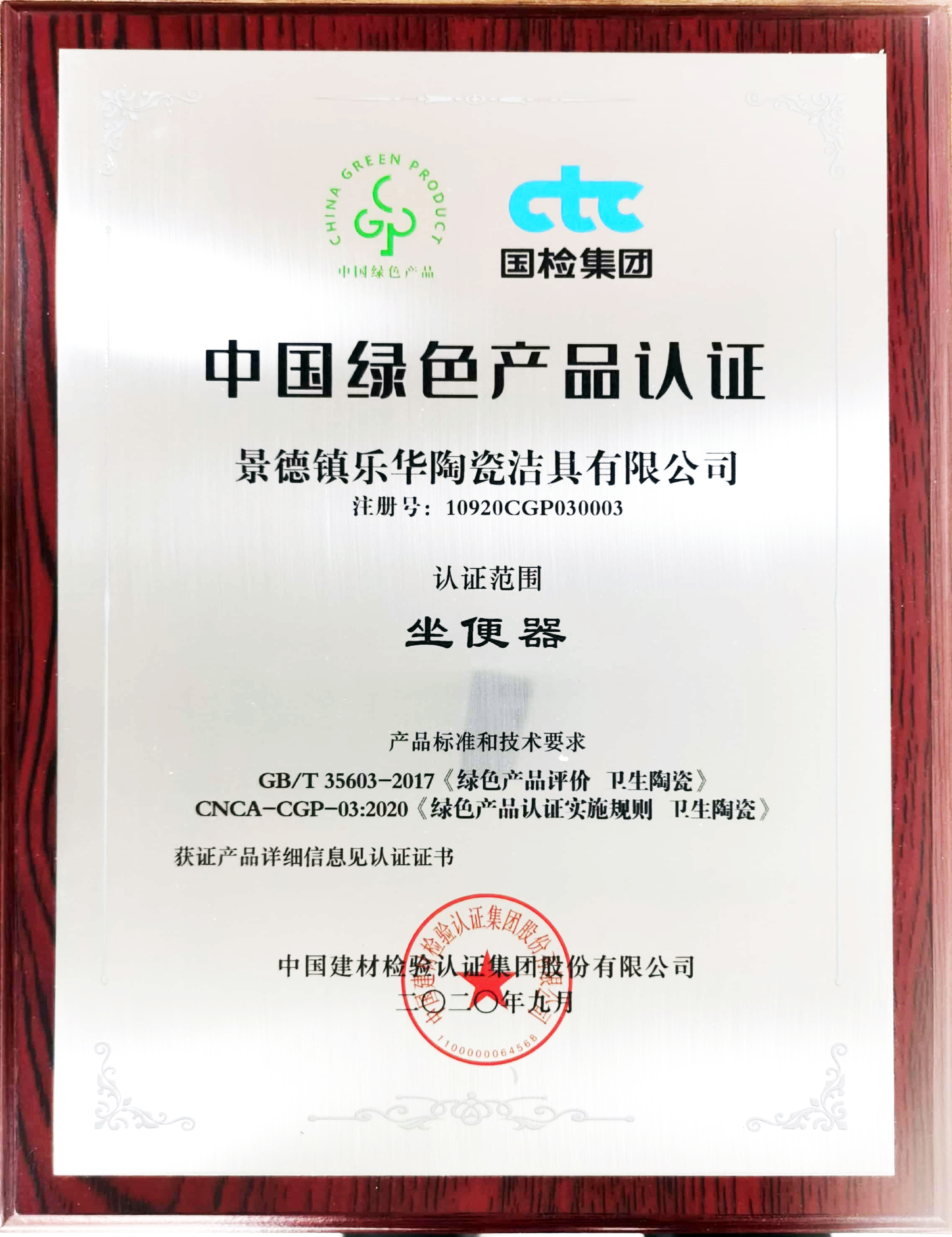中国绿色产品认证证书