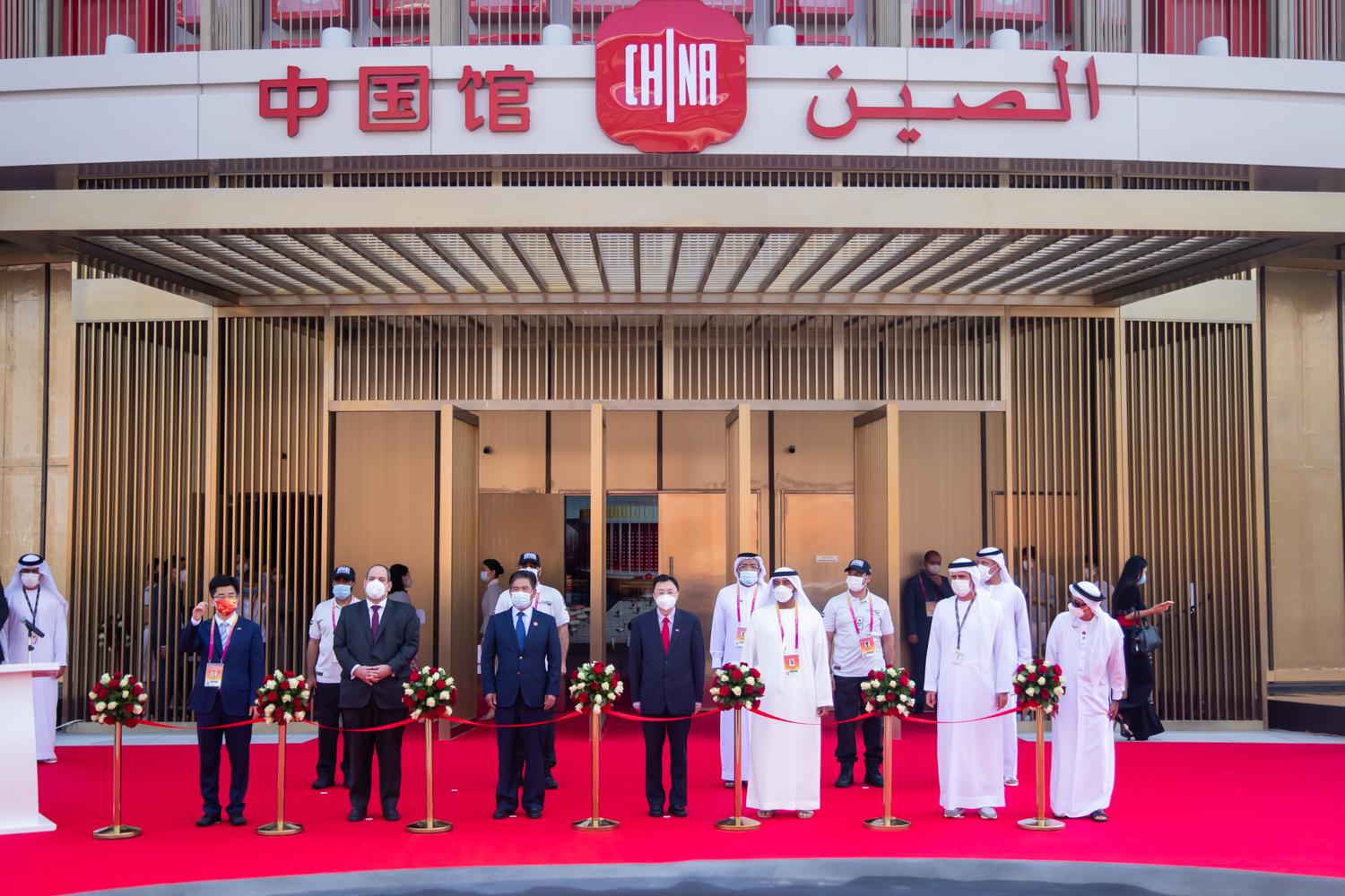 运动现场 ,, ,,,,,,首先播放了习近平主席为中国馆揭晓的视频致辞 ,, ,,,,,,之后部分嘉宾揭晓简短致辞。。。。。迪拜世博会中国馆政府总代表、中国国际商业增进委员会副会长张慎峰 ,, ,,,,,,中国驻阿联酋大使倪坚 ,, ,,,,,,中国驻迪拜总领事李旭航 ,, ,,,,,,国际展览局秘书长迪米特里·科肯切斯 ,, ,,,,,,阿联酋航空公司主席兼董事长赛义德·阿勒马克图姆 ,, ,,,,,,迪拜警员局总司令阿卜杜拉·迈利等中外嘉宾悉数出席。。。。。随后 ,, ,,,,,,出席仪式的嘉宾为中国馆剪彩并巡馆。。。。。