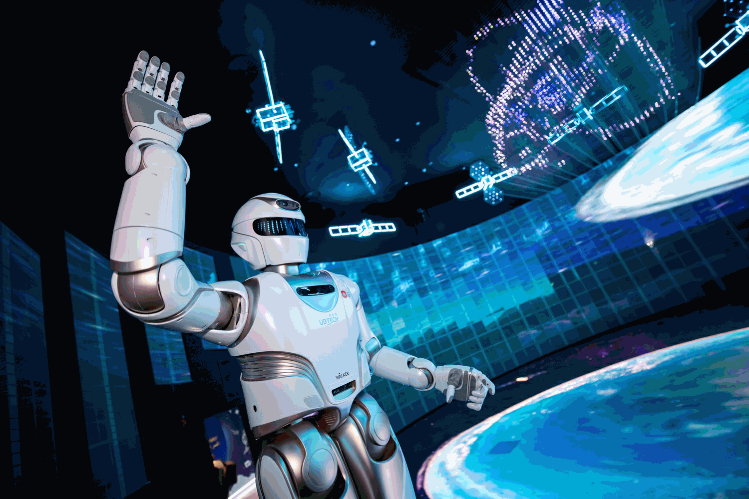 开展第一天 ,, ,,,,,,航天科技、智慧都会、未来看法汽车、智能机械人等展项吸引了大批游客驻足。。。。。