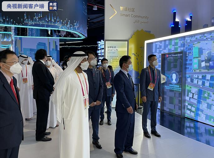 迪拜世博会中国政府总代表、中国贸促会副会长张慎峰(前排右二);;;;;中国驻阿联酋大使倪坚(前排左一);;;;;迪拜2020年世博会高级委员会主席谢赫·艾哈迈德·本·赛义德·阿勒马克图姆(前排左二)(图片泉源:央视新闻客户端)